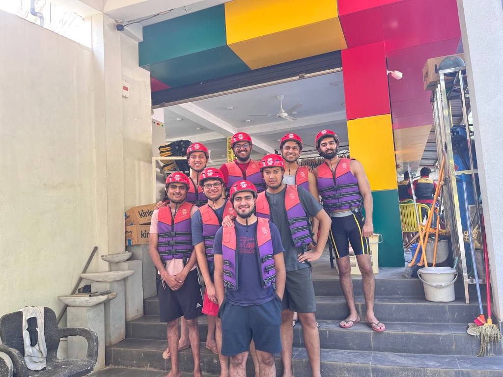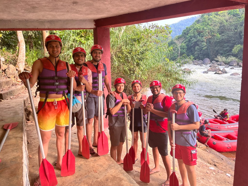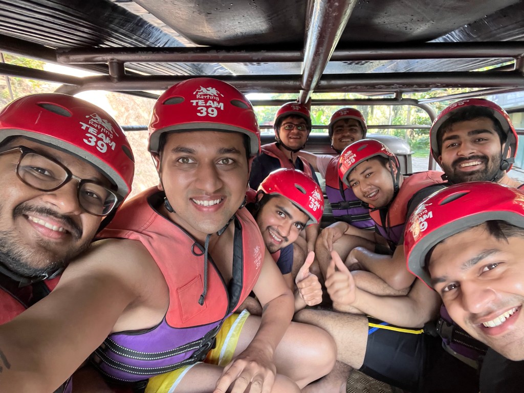 Upon reaching the spot, we booked the experience for all eight of us. There was availability, but there aren’t many service providers, so we were lucky to find free slots. They provided us with gear according to our sizes and then took us to the starting point in a jeep, as is customary before rafting experiences. We received oars, helmets, and life jackets before the activity began, along with basic instructions on maneuvering and safety.