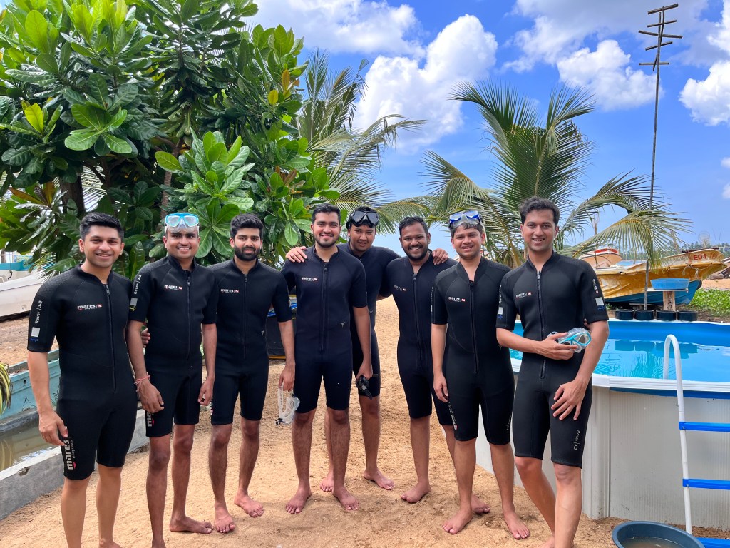 We checked out of our Airbnb and had previously called a scuba diving center to book a slot for a beginner dive for eight people on the morning of the 31st. We arrived at the dive center near Bentota around 10 AM. After some basic instructions from the instructor, which lasted about 30 minutes, we boarded a ferry that took us into the ocean.