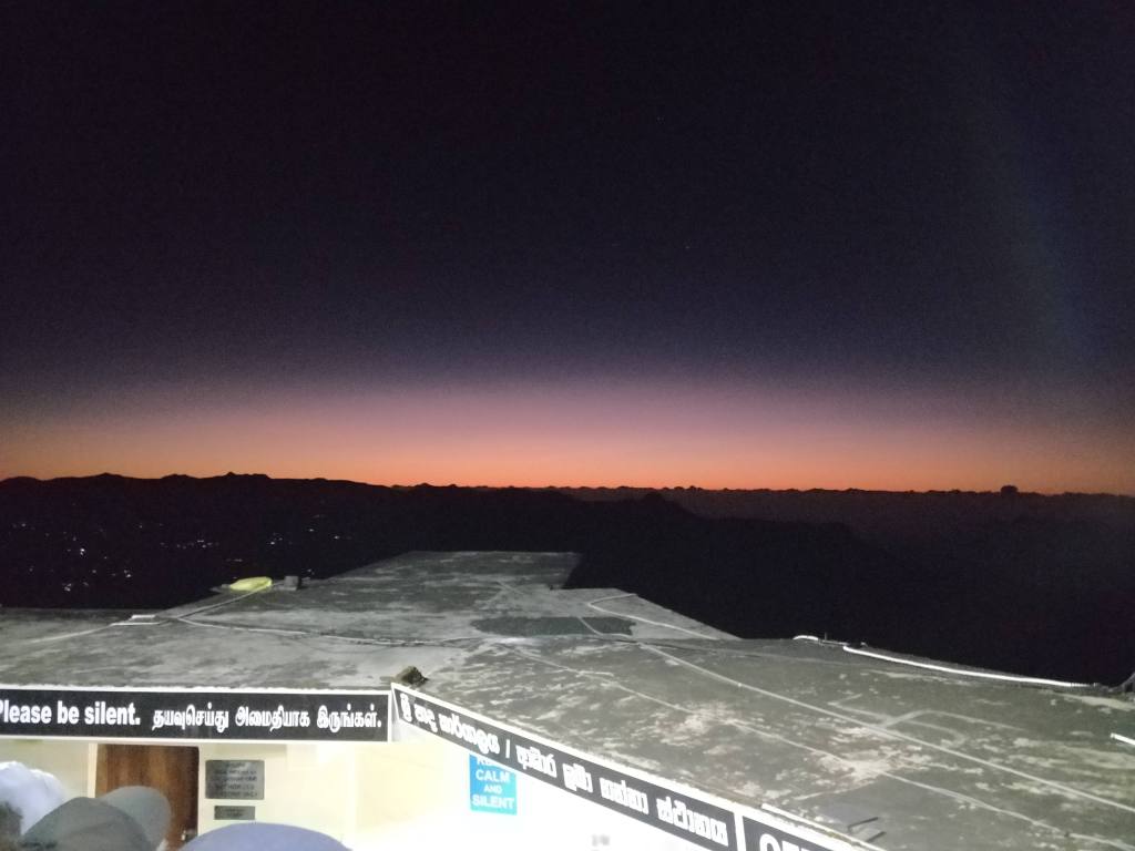 We reached the top by 4:00 AM and visited the temple by 4:15 AM while it was still dark. All the blogs mentioned that the sunrise from the top is extraordinary, so we decided to find a spot and sit there. It was three times colder at the top, primarily because we had stopped hiking and were resting. The sunrise also holds religious significance for believers, so many people wait there for dawn. While we weren’t believers, we certainly felt the cold. After 15 minutes, we decided to forego the sunrise and started heading down. The trek down was a breeze and felt incredibly easy. Around 5:00-5:30 AM, we finally caught sight of the sunrise, and yes, it was extraordinary. We didn’t realize it, but it took us 5 hours to come down. Though descending was easy, it felt like the path was never-ending.