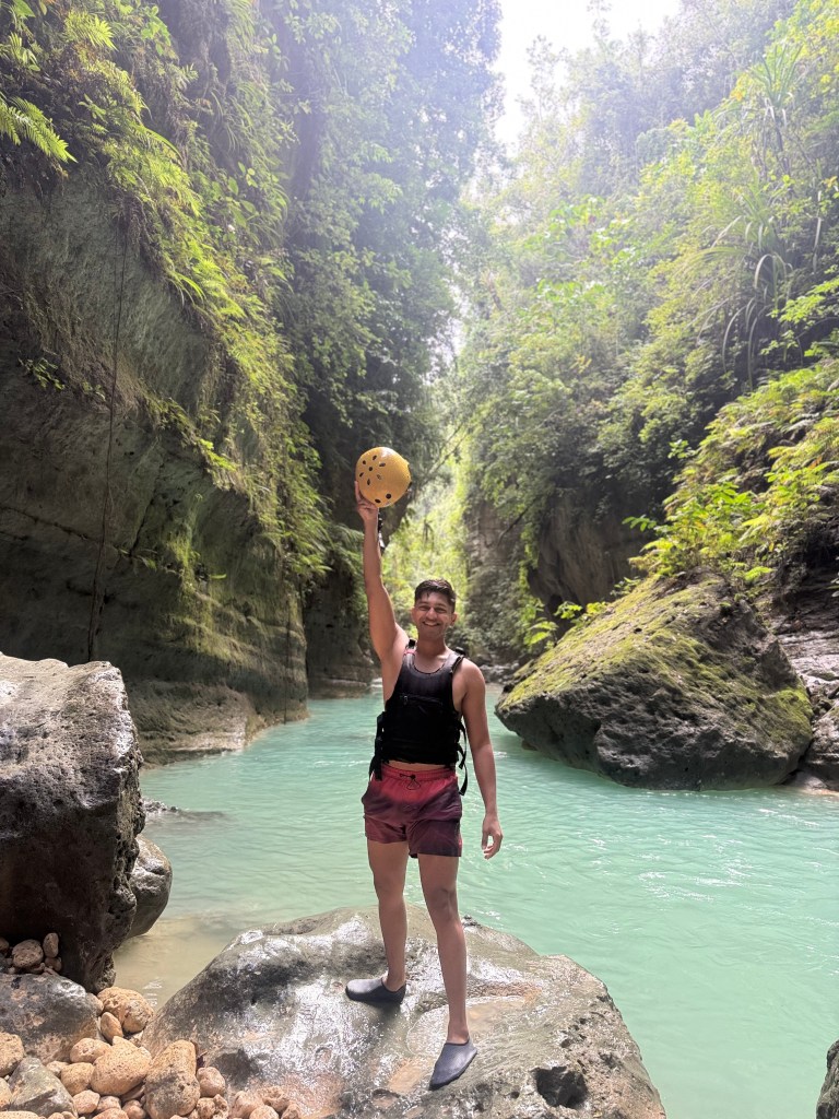 Midway through the canyon, local vendors are selling packaged snacks, fruits, and drinks — basically whatever you’d expect at a 7-Eleven — and you can pay later since you obviously don’t have cash on you in the water. There was also a 10-metre jump on the route, but it was closed when we went because the water level wasn’t high enough. My personal favourites were the two rope swings towards the end. For about 10 pesos per swing per time, you swing out over a deep blue pool and drop in. Because I’ve done some callisthenics, I ended up doing backflips and frontflips off the swing.