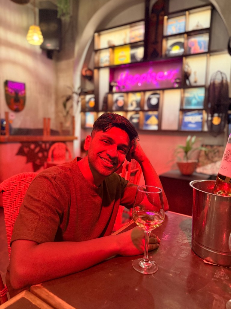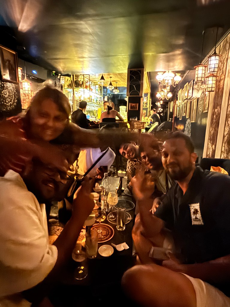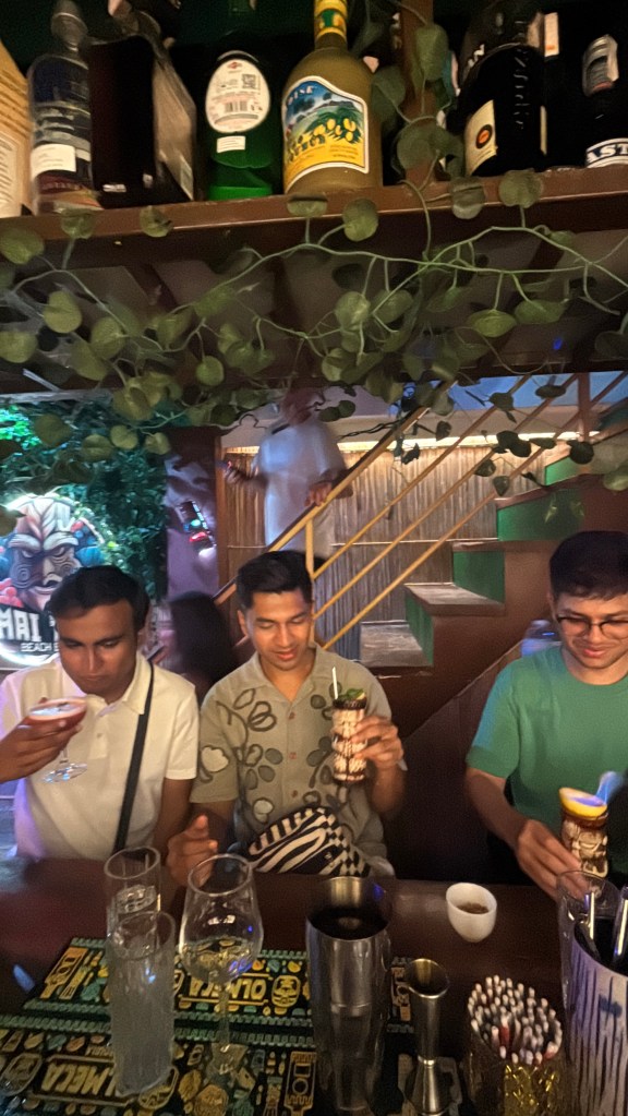After about an hour and a half there, we moved on to a proper speakeasy-style bar called Battuta. It’s hidden in a really fun way: from one side, it looks like the back of an Italian restaurant, and from the “Indian side”, you actually walk through what looks like a wardrobe of hanging clothes to enter. From the Italian side, it’s just a plain white door that you’d never guess is an entrance. Inside, the interiors are gorgeous — dim, elegant, very thoughtfully done.