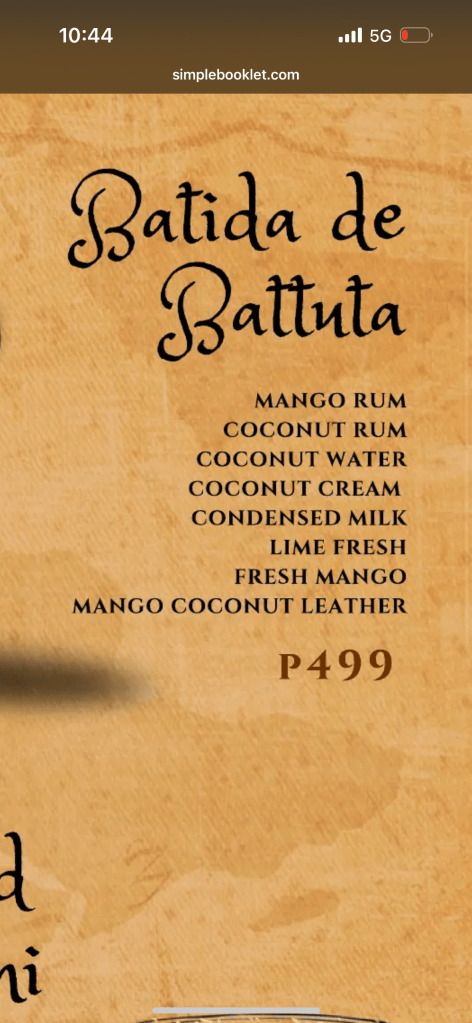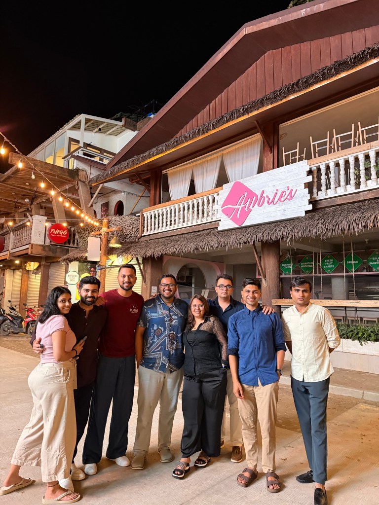 As evening came closer, we headed for dinner at Nonie’s. We, later, shifted gears to Boracay’s nightlife. People often say Boracay has some of the best cocktail bars in the country, and I can see why now. We first went to a lively tiki-style bar on the beach- Mai Tai — the kind of place where the DJ and a live percussionist play together, bartenders are vibing behind the bar, and everyone’s swaying with dark-rum cocktails in hand. Most bars in the Philippines don’t have full kitchens; they usually serve “pulutan” – basic bar snacks and packaged sides – so it’s more about the drinks and music than the food.