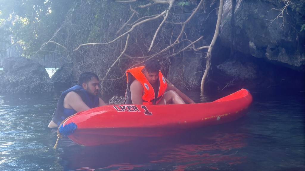 However, this day also came with some expensive lessons. Even though I had a waterproof pouch for my phone, I made the classic “it’ll be fine” mistake. Two of us were sharing a kayak in the lagoon, and at one point we decided to get into the water for better photos. The lagoon is quite deep, and in all the excitement, our kayak flipped. We were suddenly in the water, and my phone, which was briefly outside its pouch, dipped straight into the sea. Saltwater killed the display; back in India I ended up paying around ₹30,000 for a screen replacement, and even now some parts of the phone don’t work properly. I still regret that moment. The lagoon is beautiful and kayaking there is amazing, but the proper way is to stay strapped, be mindful, and only get into the water in shallower sections where you can stand.