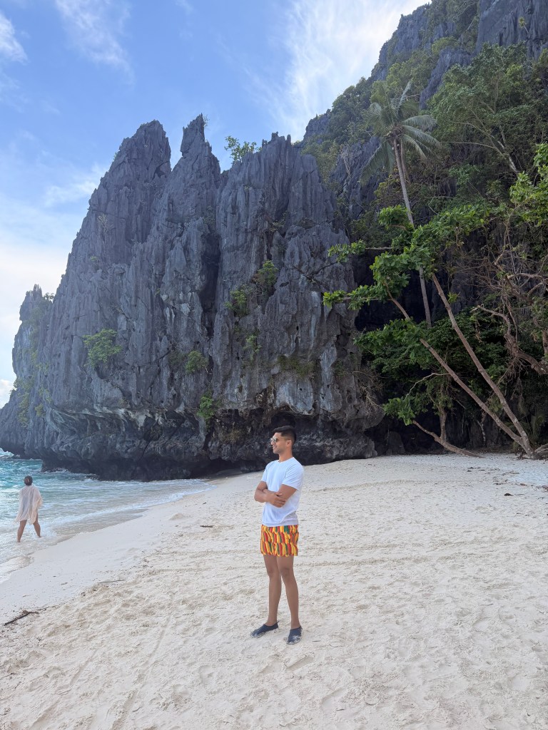 For Day 4 in El Nido, we’d booked Tour A, which is the most popular island-hopping tour in the area by number of travellers. The routine was now familiar: we rode our two-wheelers into town, grabbed a relaxed breakfast at one of the many cafés (El Nido is full of vegan and international options thanks to its global backpacker crowd), and reached the El Nido Paradise office around 10:30 am. From there, just like the previous day, we kayaked out to our bigger boat, where the same style of crew and setup was waiting for us.