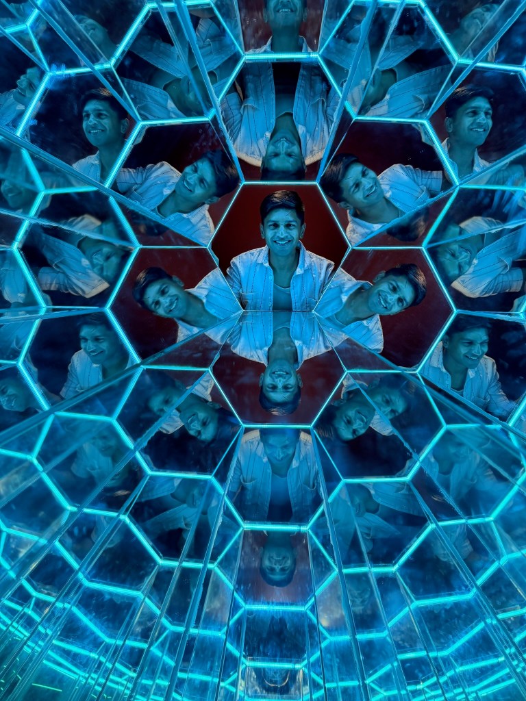 2nd January was our final full day in the Philippines. We started with a vegan breakfast at a plant-based café- Green Bar. From there, we visited a nearby mall that had a teamLab-style light installation called Space and Time Cube— interactive digital art, glowing structures, and immersive light play. It sucked big time. Disgusting.