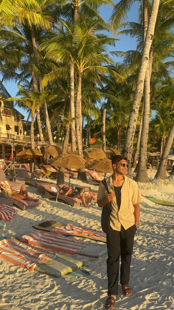 Post-lunch, we strolled along the White Beach path, soaking in the vibe. The entire beachfront is alive: people playing volleyball and tennis, doing SUP, shooting reels, tossing frisbees, booking island-hopping tours, or just lying on the sand waiting for sunset. We joined in with some frisbee, lazed by the water, and enjoyed the classic Boracay energy.