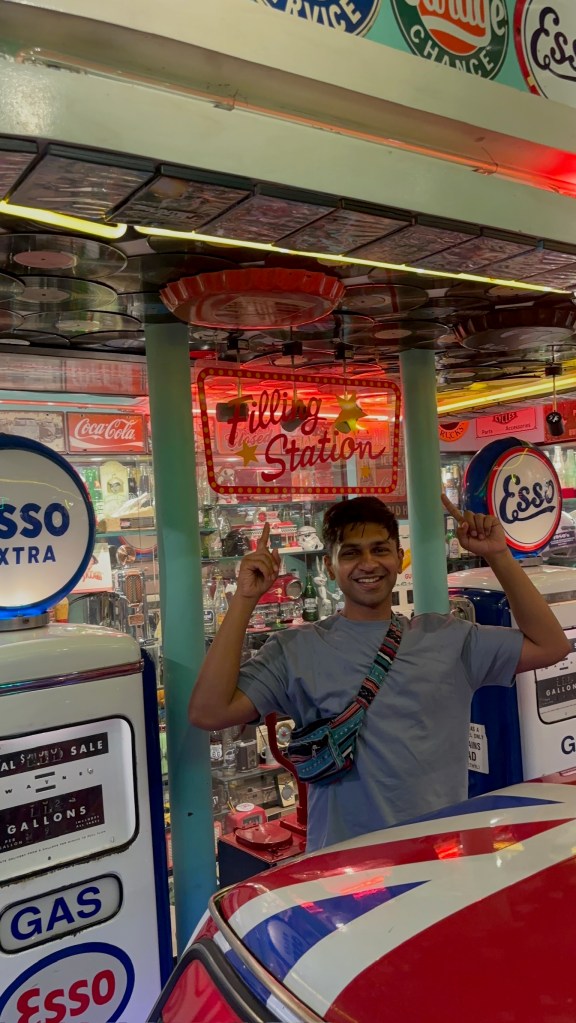 Instead, we pivoted to something Manila does very well: bar hopping in Poblacion. It’s also the red light area of the city. We tried a couple of different places, but my favourite by far was The Filling Station — a retro, American-diner-style spot with crazy décor, neon lights, vintage posters, and a super fun atmosphere. It’s one of those places where you keep noticing new details every time you look around.