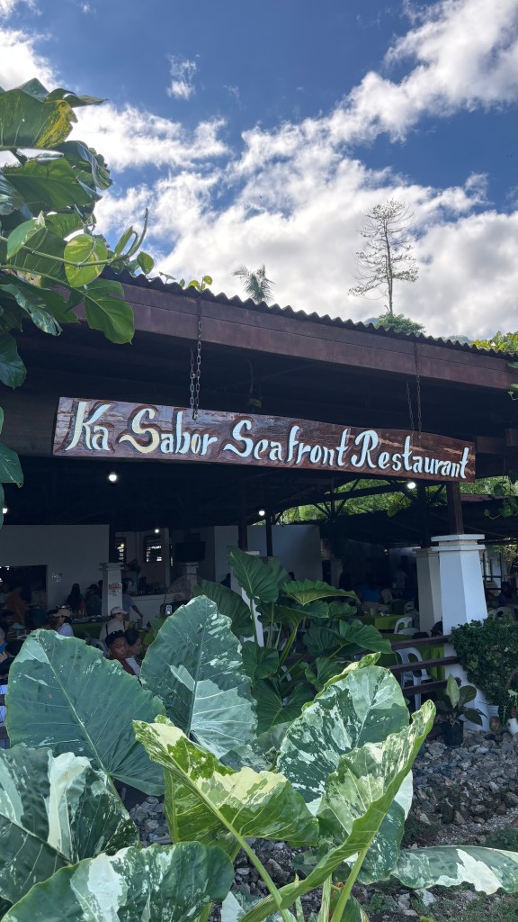 Lunch was included in our tour cost, like most tours in the Philippines. You don’t choose your own restaurant; the tour partner has a tie-up with a local buffet place. So we were taken to a nearby restaurant that had an unlimited buffet spread. As with almost everywhere in the Philippines, about 90% of the dishes were non-vegetarian — lots of chicken, pork, and fish curries, plus rice, some cut fruits, and usually one basic potato or vegetable-based curry. The flavours and smell are quite different from Indian food, and some vegetarians in our group really struggled to eat anything beyond fruits. You’ll generally find a few juice and smoothie counters around, so that’s another backup if the buffet doesn’t work for you.